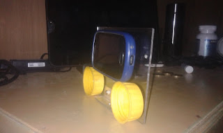 DIY android phone holder for recording videos putting a phone for you to see what it looks like and how to use it.that yellow thing is a bottle cap screwed like that so you can adjust .